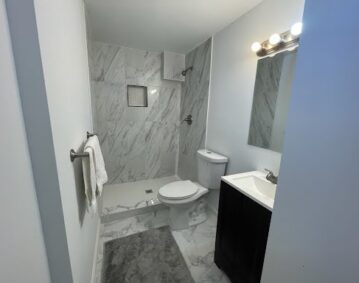 The Preakness project was a bathroom remodel for a big bathroom. The plan was to completely update the outdated bathroom.